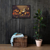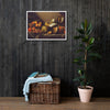 Bringing some classic art home is easy with this framed canvas print. It shows off "Still Life with Fruit," an amazing piece from the painter Caravaggio. He was a whiz at making everyday things look real, and this painting is no different; you can practically feel the fruit! The way he uses light and shadows here is just incredible.