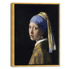 "The Girl with a Pearl Earring" is a true masterpiece by Johannes Vermeer that people all over the world love. This famous pearl earring painting is now a canvas print, available in sizes from 12" x 16" up to 24" x 32". You can get this classic painting pearl earring framed in either a classic black or a fancy bronze gold. What makes this piece so special? It's the mysterious young woman with that sparkling pearl earring, and her gaze is so captivating. Vermeer's amazing use of light and shadow, along with the detailed expression on her face, really draws you in. This Girl with a Pearl Earring painting will provide your home with a touch of elegance and mystery.