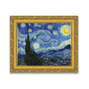 "The Starry Night" is one of Vincent Van Gogh's most famous works, painted in June 1889 during his stay at the Saint-Paul-de-Mausole asylum in Saint-Rémy-de-Provence, France. This amazing work of art shows the view from his room just before sunrise, with a perfect place added on the surface.. This handmade oil painting of "The Starry Night" brings this iconic artwork to life in your home or office. Available in various sizes (16" x 20" to 40" x 50"), you can select the perfect fit for your space. Each piece is framed in your choice of elegant black & gold, classic black, or sophisticated gold solid wood frames, adding a touch of luxury to the vibrant and dynamic composition. Enhance your decor with this timeless symbol of artistic genius and emotional depth.