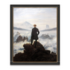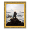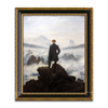 "The 1818 painting "Wanderer Above the Sea of Fog" by Caspar David Friedrich is a classic example of Romanticism. It shows a single person standing on a rocky outcropping and looking out over a sea of fog. This painting symbolizes the human experience of confronting the sublime, embodying themes of introspection and awe. Our original handmade reproduction painting of "Wanderer Above the Sea of Fog" allows you to bring this profound piece of art into your workplace or home.. Available in various sizes (24” x 20” to 46” x 36”), this painting can be tailored to fit your space perfectly. Each piece is framed in your choice of luxurious black & gold, classic black, or sophisticated gold solid wood frames, adding an elegant touch to the timeless artwork. You can change the look of your space with this beautifully made piece that respects Friedrich's classic appeal.